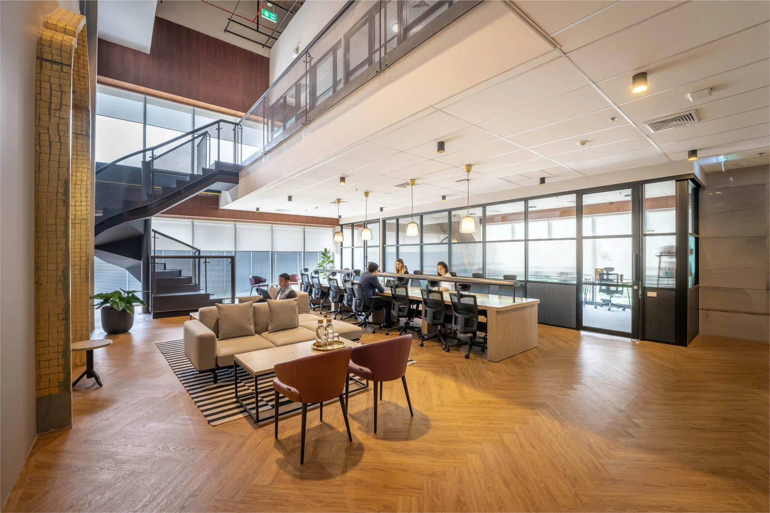 The co-working space is beautifully designed, with plenty of workspace, both communal and for solo work